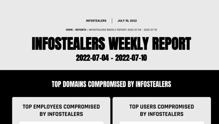 Infostealers Weekly Report: 2022-07-04 – 2022-07-10